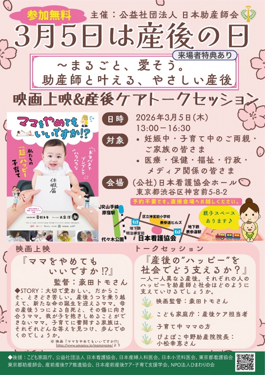 【終了しました】3月5日は産後の日~映画上映&トークセッション開催~【参加無料】